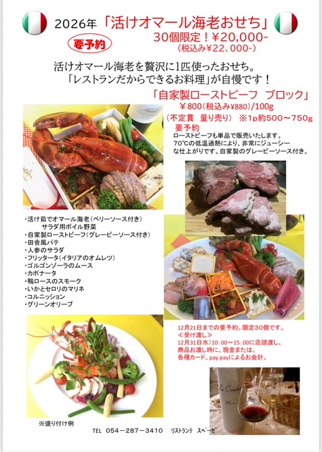 お電話にてご予約受付中!2025年12月21日までの要予約。限定30個です。※詳細はこちら>>