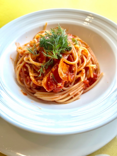 リストランテ スペーゼ 「秋シャケと玉ねぎのトマトソース」