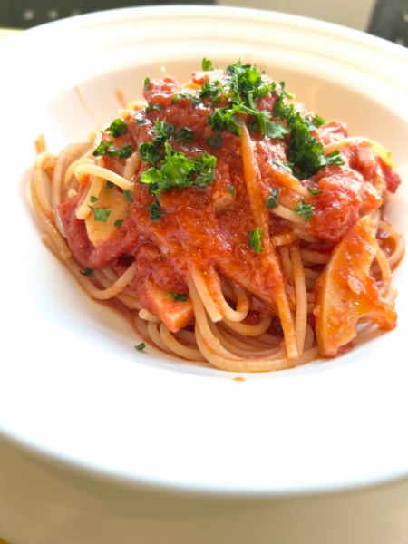 リストランテ スペーゼ 「ベーコンとレンコンのトマトソース」