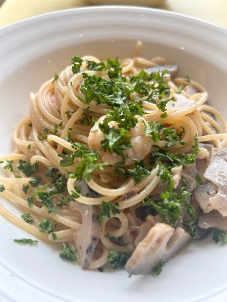 リストランテ スペーゼ 「小エビとレンコンアンチョビのスパゲッティ」